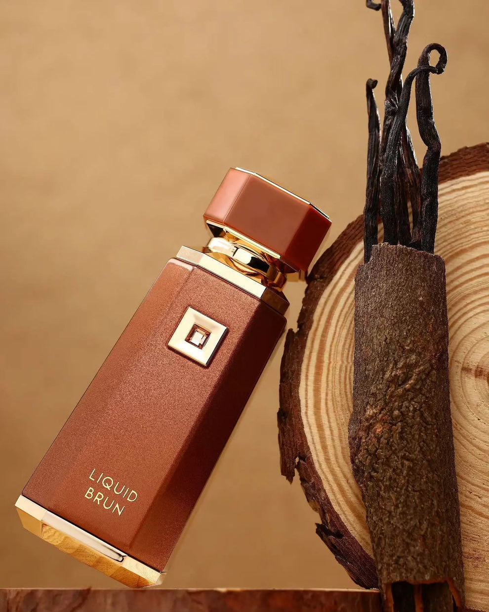 Desde a primeira borrifada, a fragrância Liquid Brun abre com uma explosão quente de canela e cardamomo, equilibrada pelo frescor da bergamota e um suave toque floral de flor de laranjeira. À medida que a fragrância se instala, a rica baunilha bourbon e o exótico elemi reconfortam o coração. Por fim, a secagem revela camadas profundas de almíscar, praliné doce, ambroxan cremoso e madeira guaiac esfumaçada.